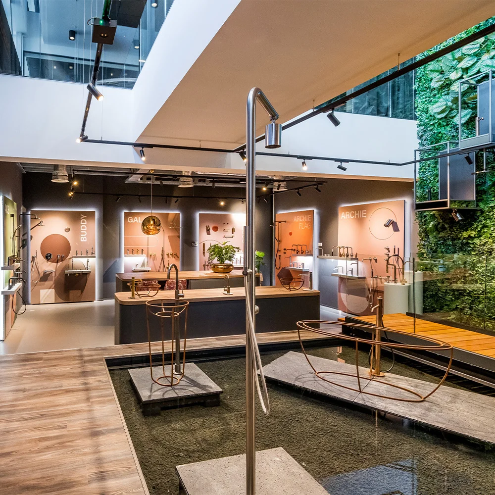 Le studio d’inspiration Hotbath est le lieu où design, innovation et expérience se rencontrent. Les collections y sont présentées dans un environnement qui invite à découvrir des idées et à explorer toutes les possibilités. Le studio montre comment style et fonctionnalité vont de pair et offre un cadre dans lequel la polyvalence de Hotbath prend vie.
