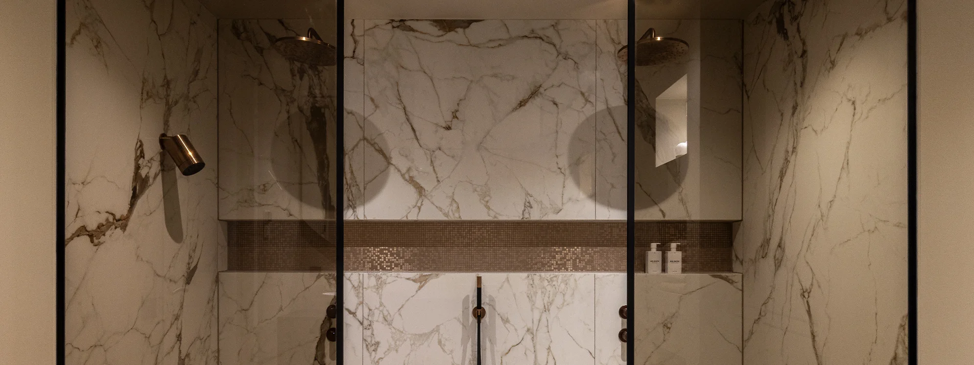 Niet alleen de grote elementen dragen bij aan de Hotel Chique sfeer; het zit hem ook in de details. De geïntegreerde inbouwnis biedt ruimte voor luxe badproducten en zorgen dat de wanden strak en vrij blijven. De sfeervolle verlichting en het subtiele kleurgebruik versterken de warme ambiance, terwijl de hoogwaardige afwerking en materialen het geheel naar een hoger niveau tillen. Hier is alles gericht op comfort en elegantie, precies zoals Hotel Chique bedoeld is.